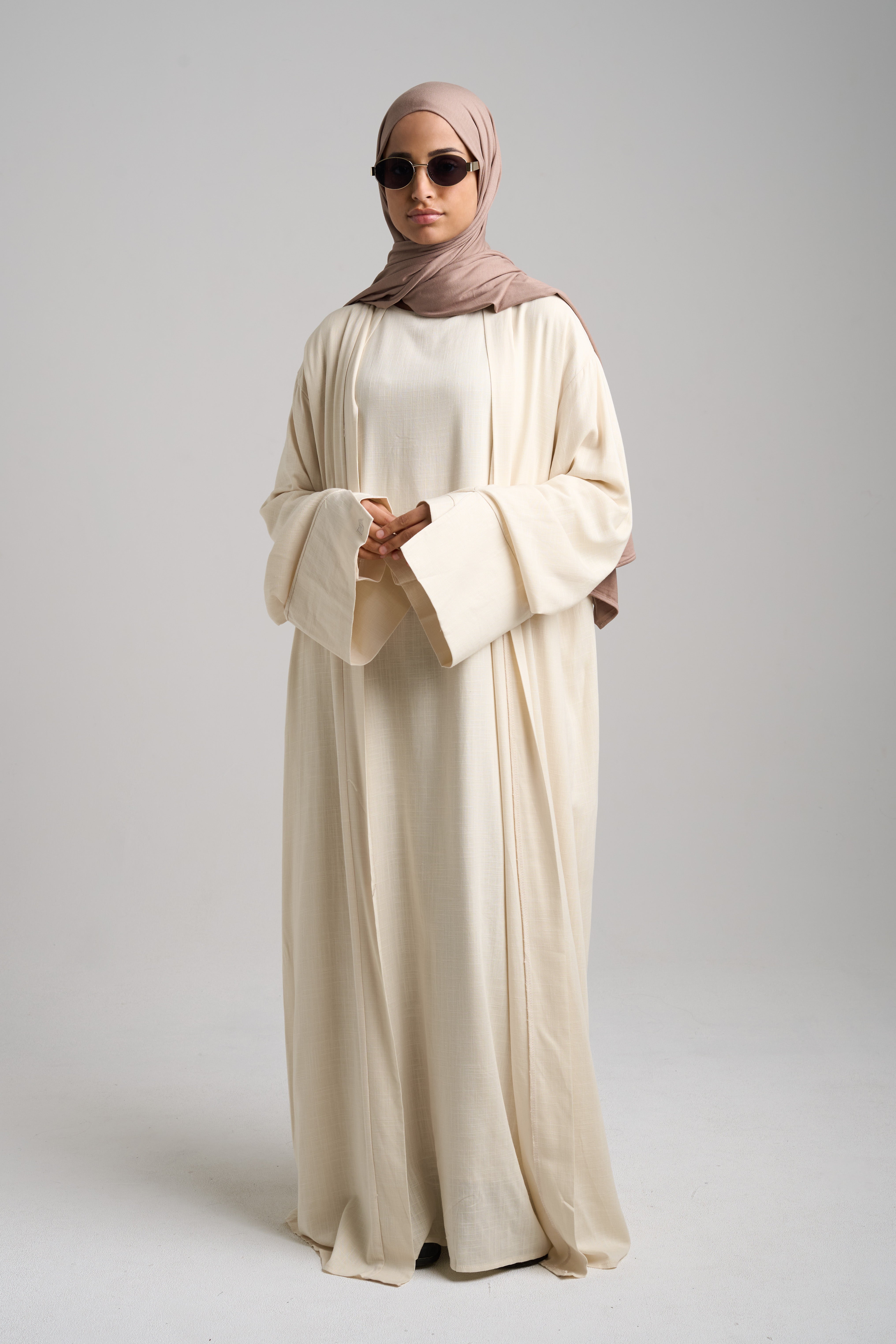 The Luxury Natural Linen Kimono Set is a stylish 2-piece set, consisting of a long sleeved slip dress and a matching kimono. Made from an all-natural cotton-linen blend for a breathable, luxurious feel. Available in 4 elegant colours.