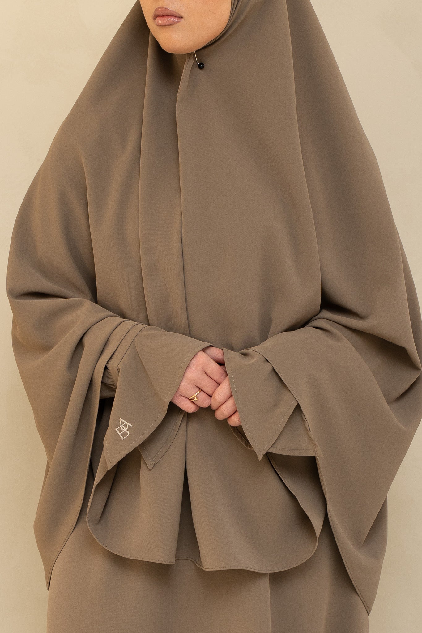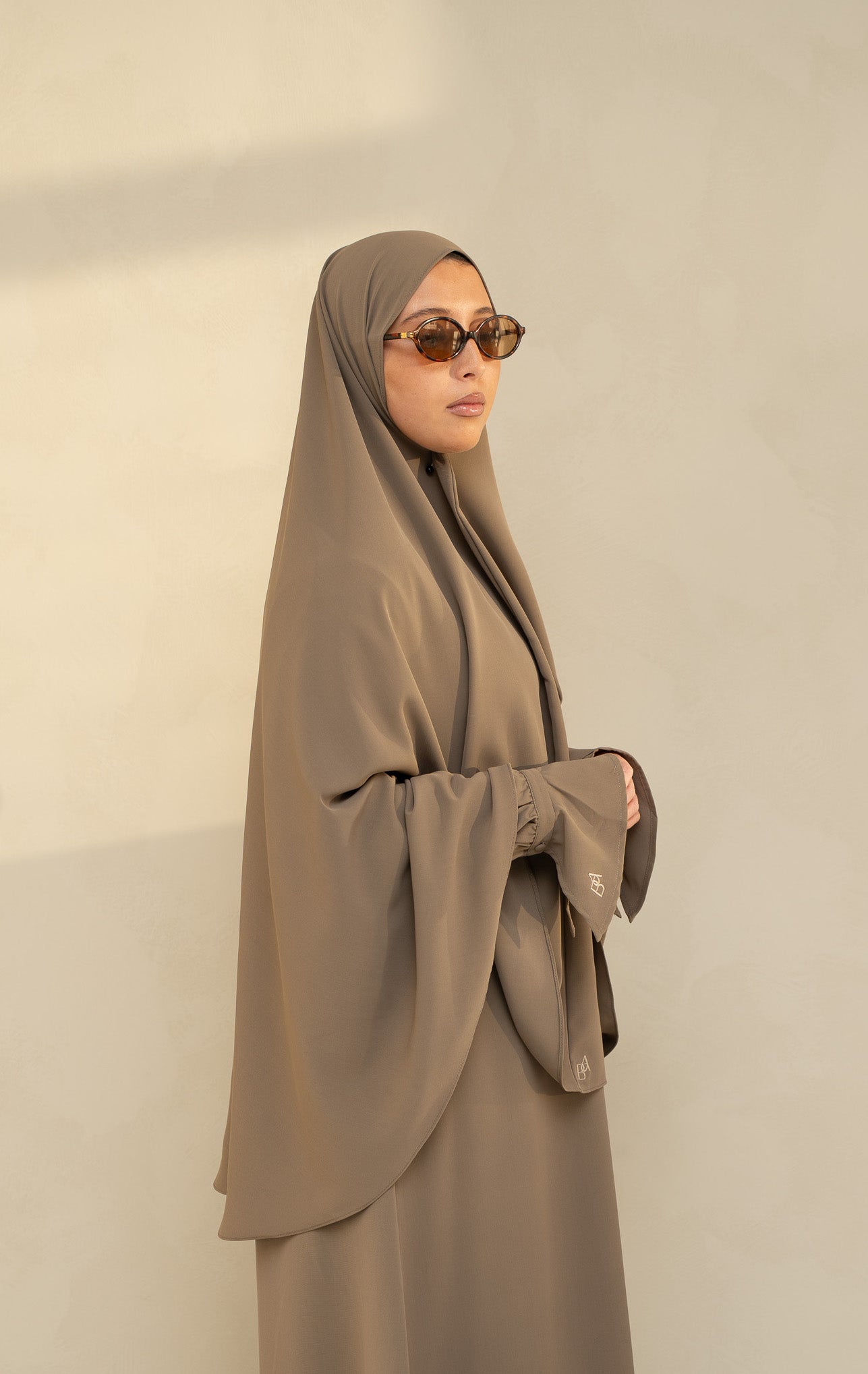 The set includes a matching hip-length khimar, completing the polished look. Available in four beautiful shades, thoughtfully curated to complement your wardrobe.