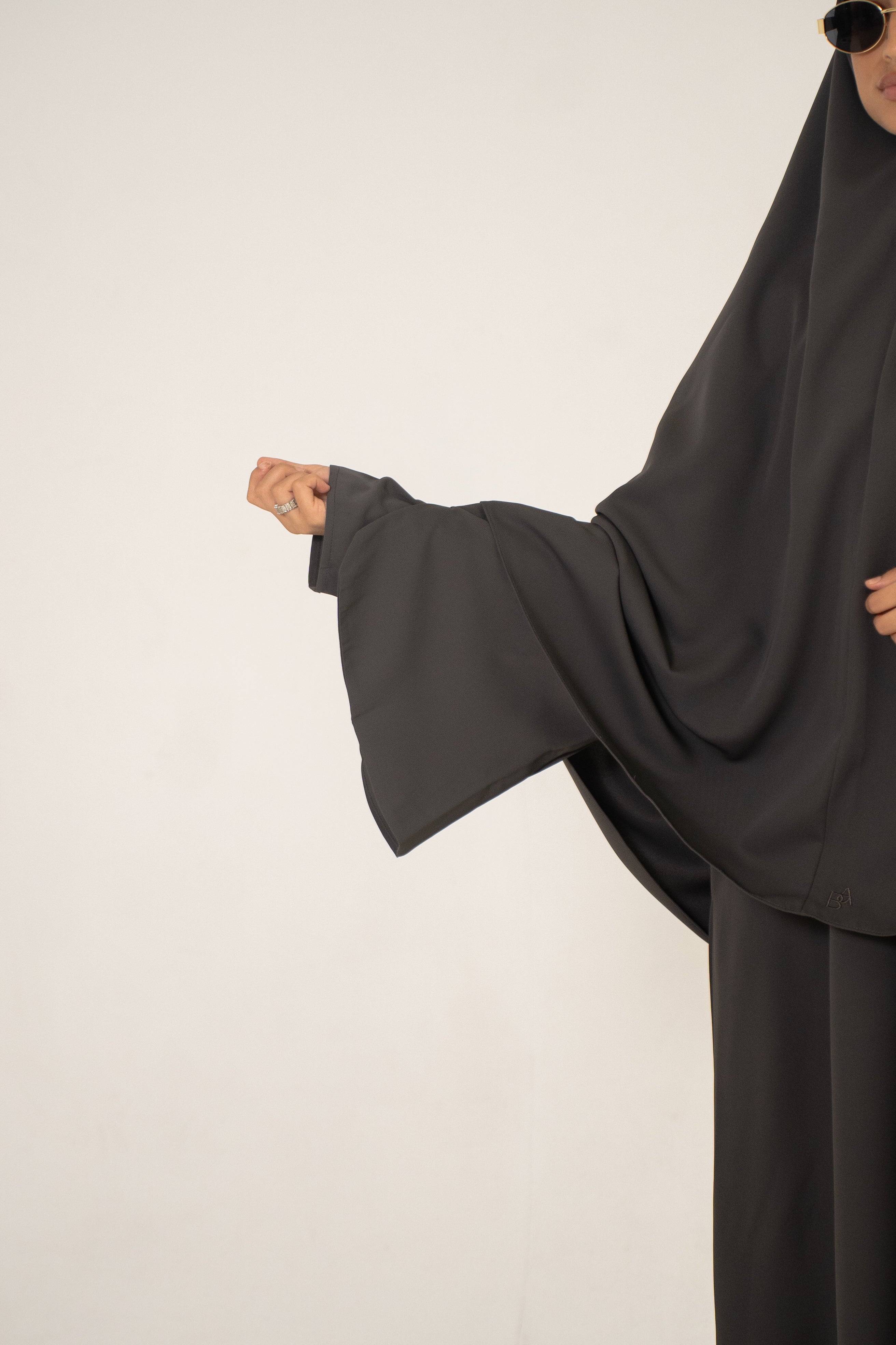 Discover the Huda Sleeve Abaya Set, an elegant abaya that effortlessly combines style and comfort. The abaya features a refined rounded split detail on the sleeves and a hidden front zipper, adding a subtle yet practical touch. Made from a high-quality, soft fabric, it’s perfect for the cooler days.