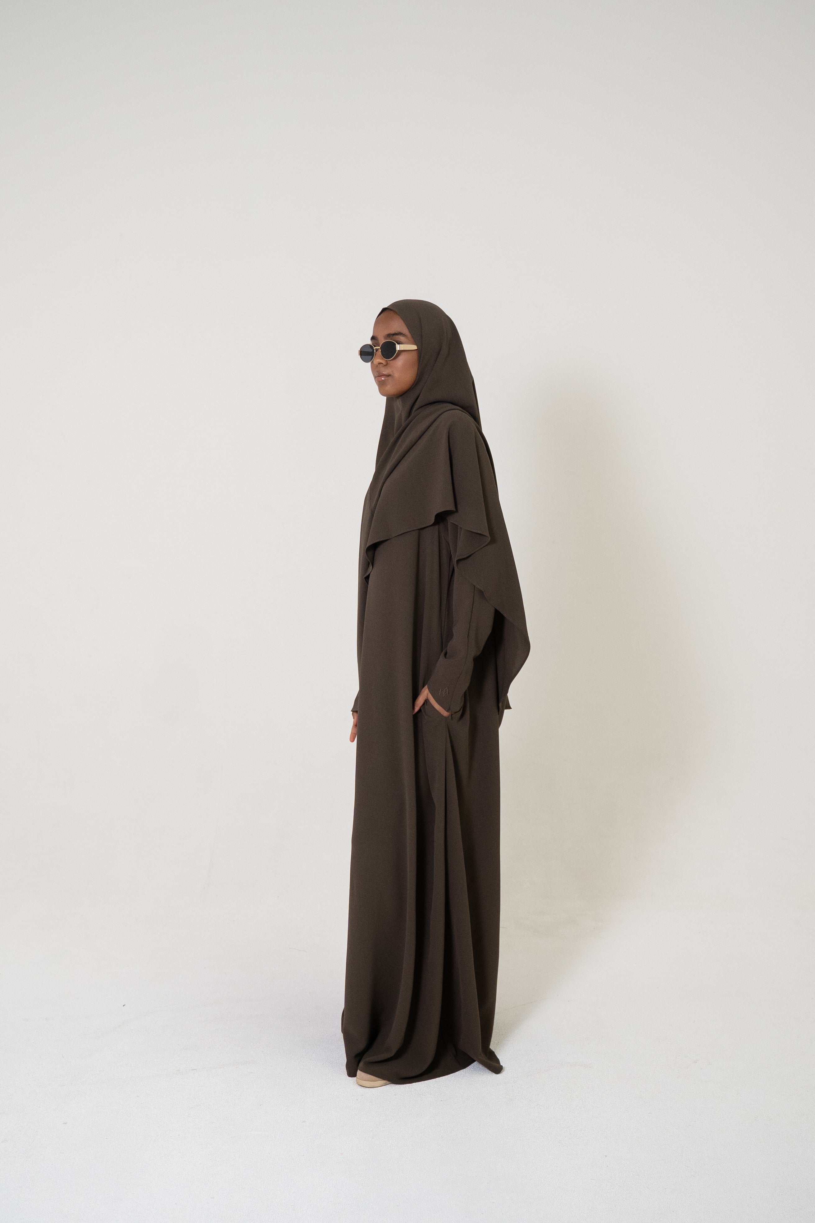 This versatile abaya is easy to pair with our Lightweight Hip or Knee Khimar, allowing you to effortlessly create a complete and elegant look for any occasion.