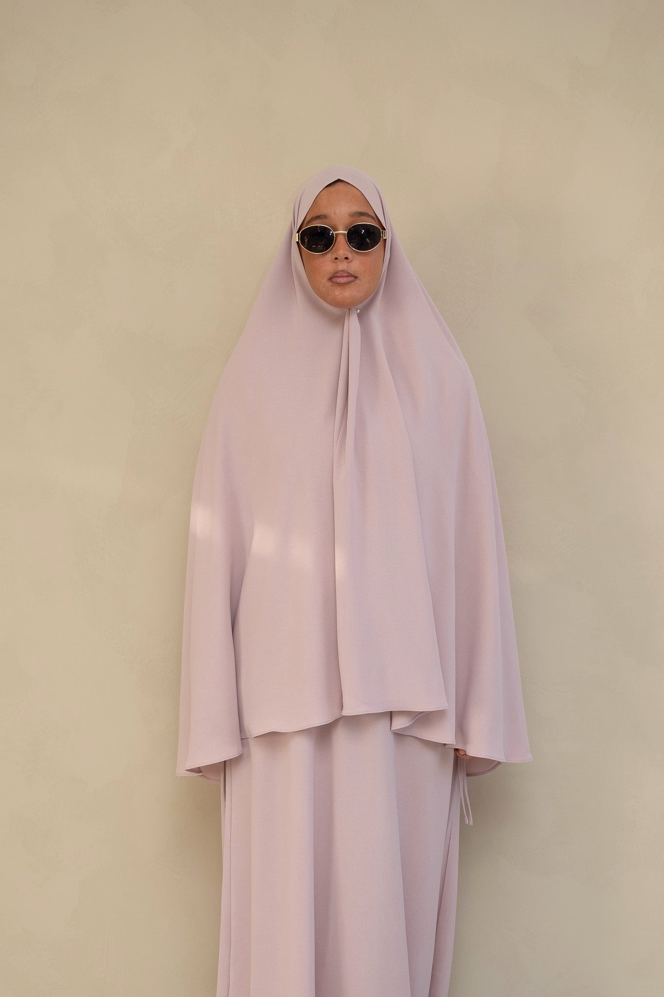 Our bestseller from last season is back: the Lightweight Hip Khimar. This beloved hip-length khimar has been reintroduced in eight beautiful, refreshed colors. Its timeless design offers an elegant, flowing look, while the lightweight fabric ensures a comfortable and airy feel.
