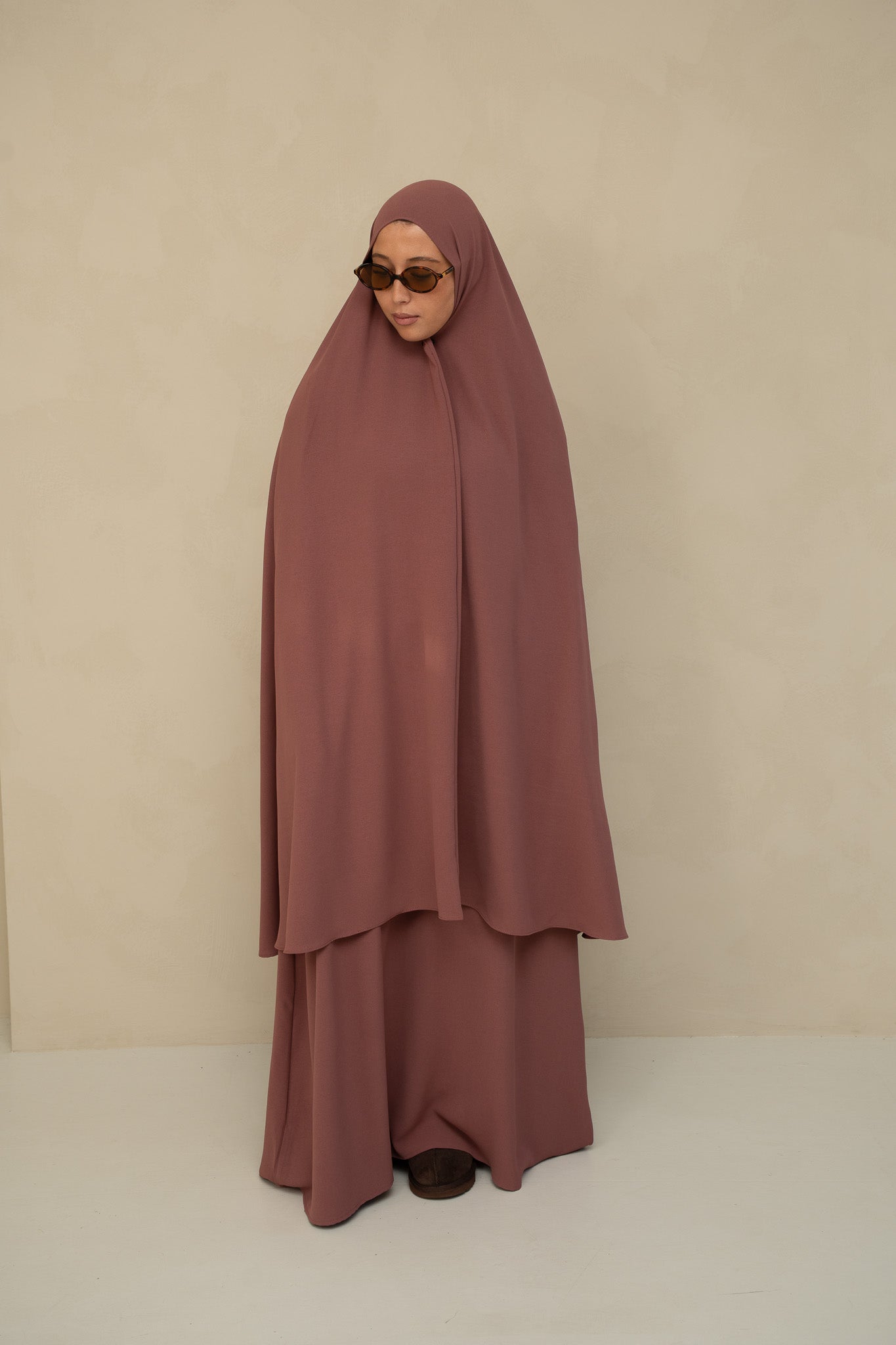 Our bestseller from last season is back: the Lightweight Knee Khimar. This beloved knee-length khimar has been reintroduced in eight beautiful, refreshed colors. Its timeless design offers an elegant, flowing look, while the lightweight fabric ensures a comfortable and airy feel.