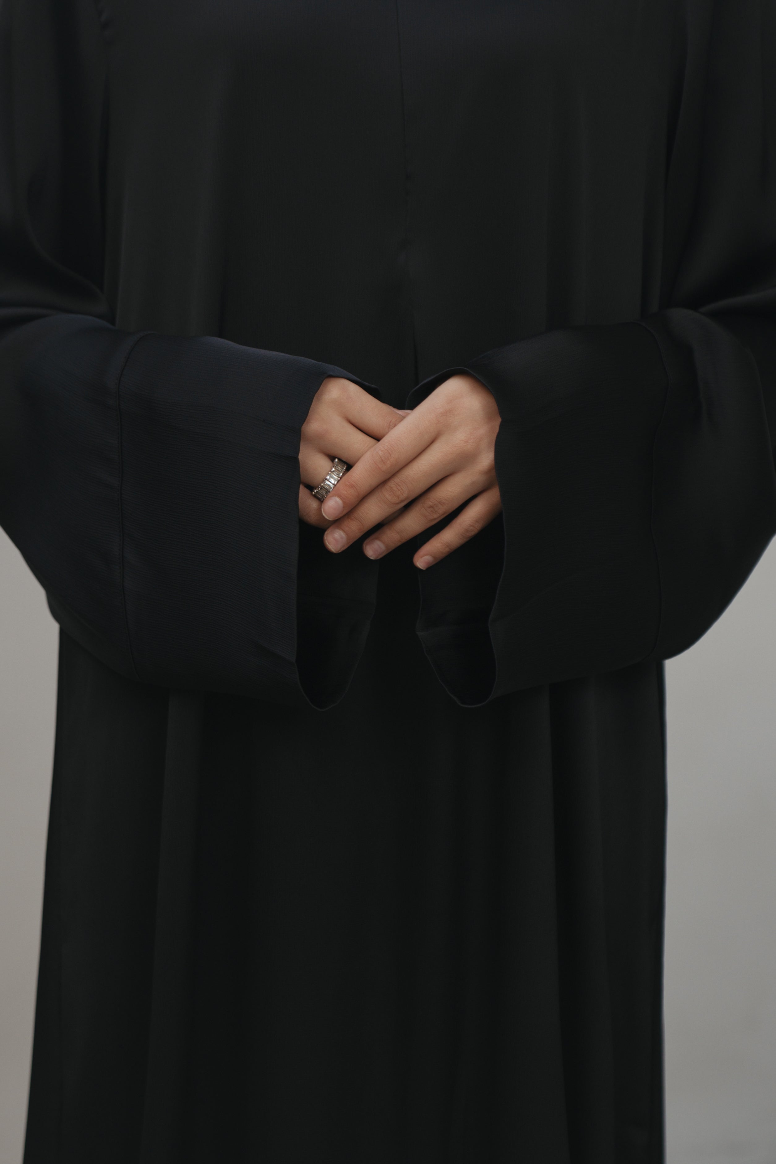 Crafted from high-quality materials, this set not only provides a luxurious satin appearance but also an unmatched feeling of softness and flexibility. The wide sleeves add a touch of elegance to every movement, while the concealed front zipper ensures effortless dressing.