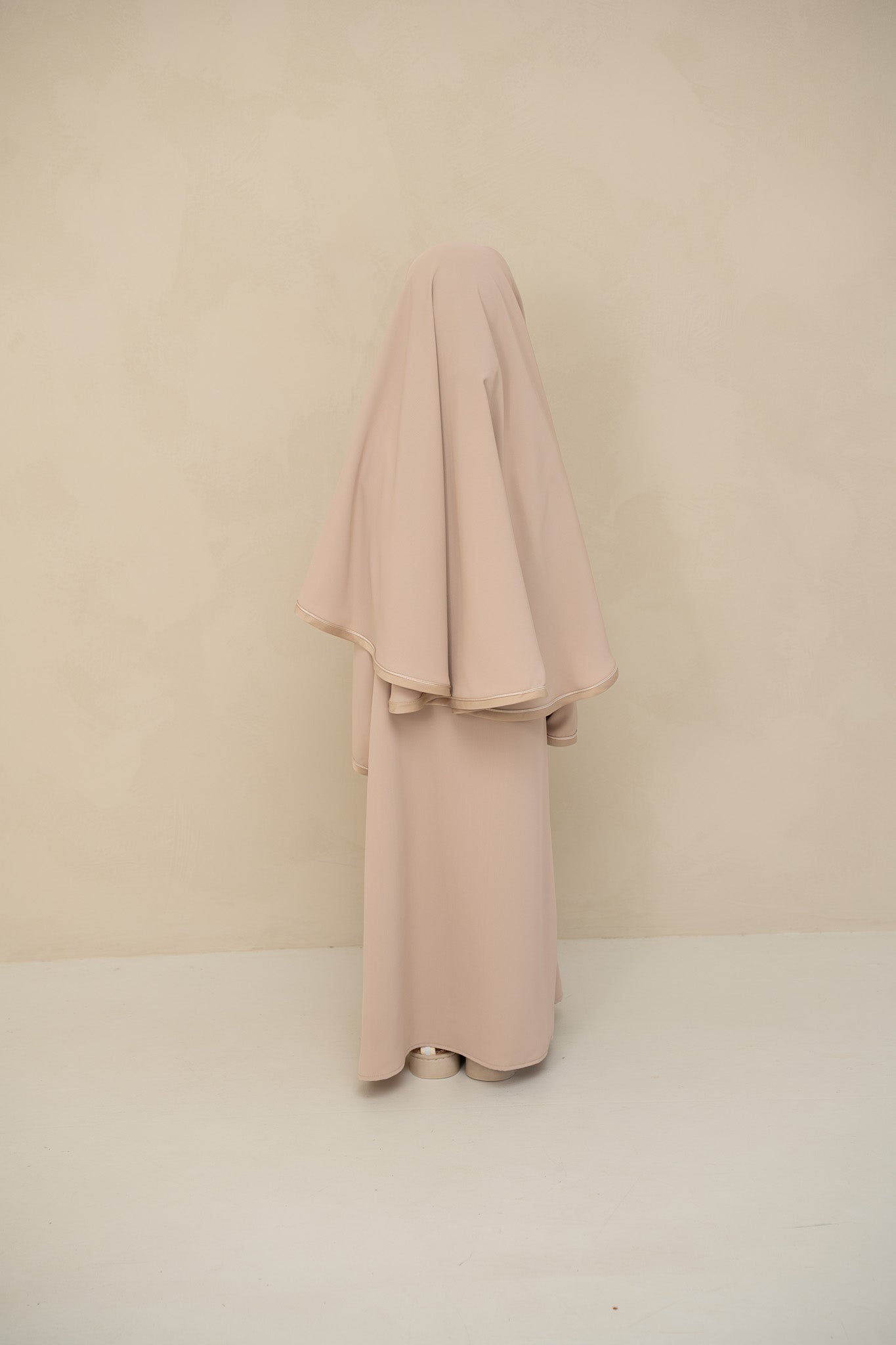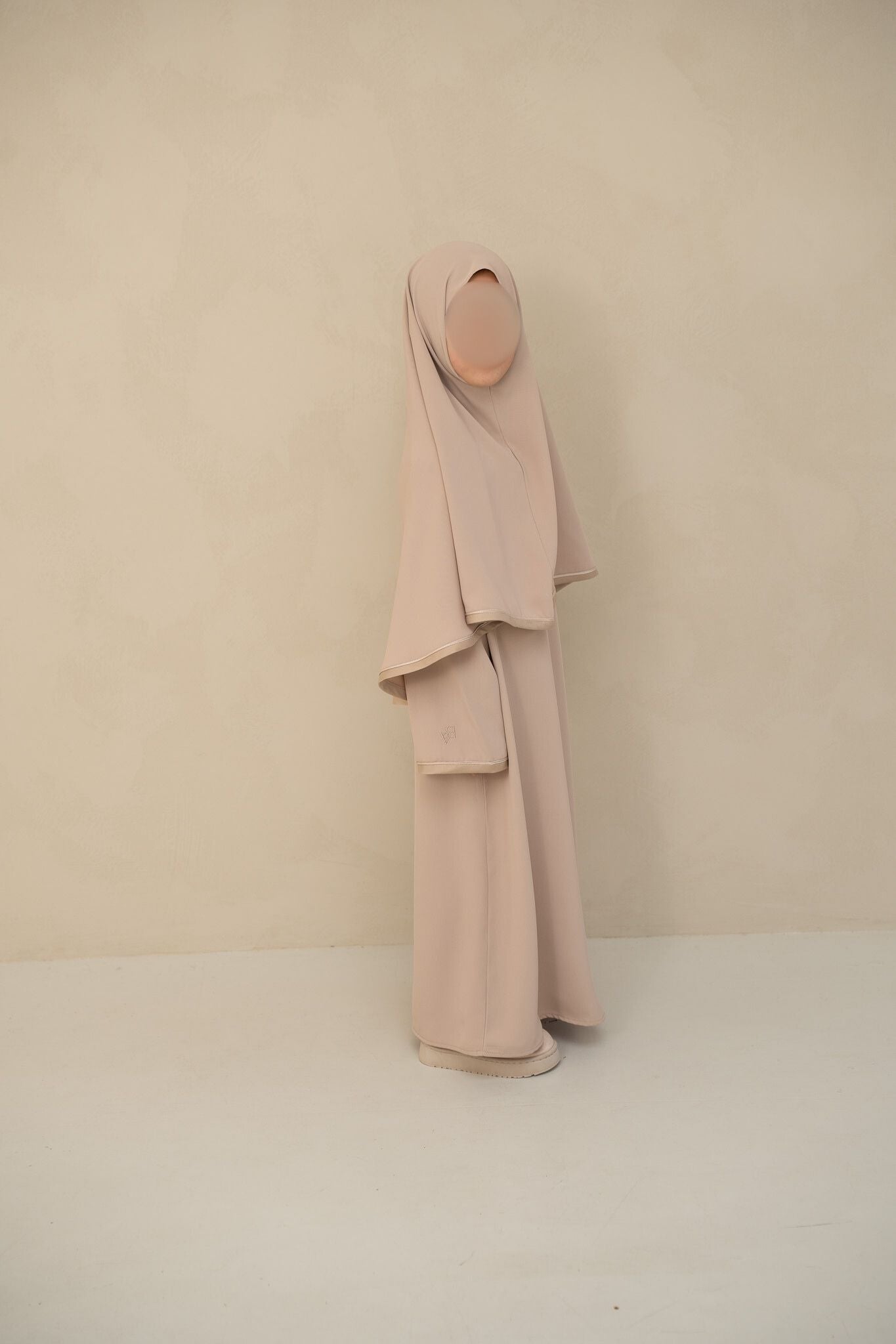 Silk Edge Abaya & Khimar Kids Set - Desert Mist