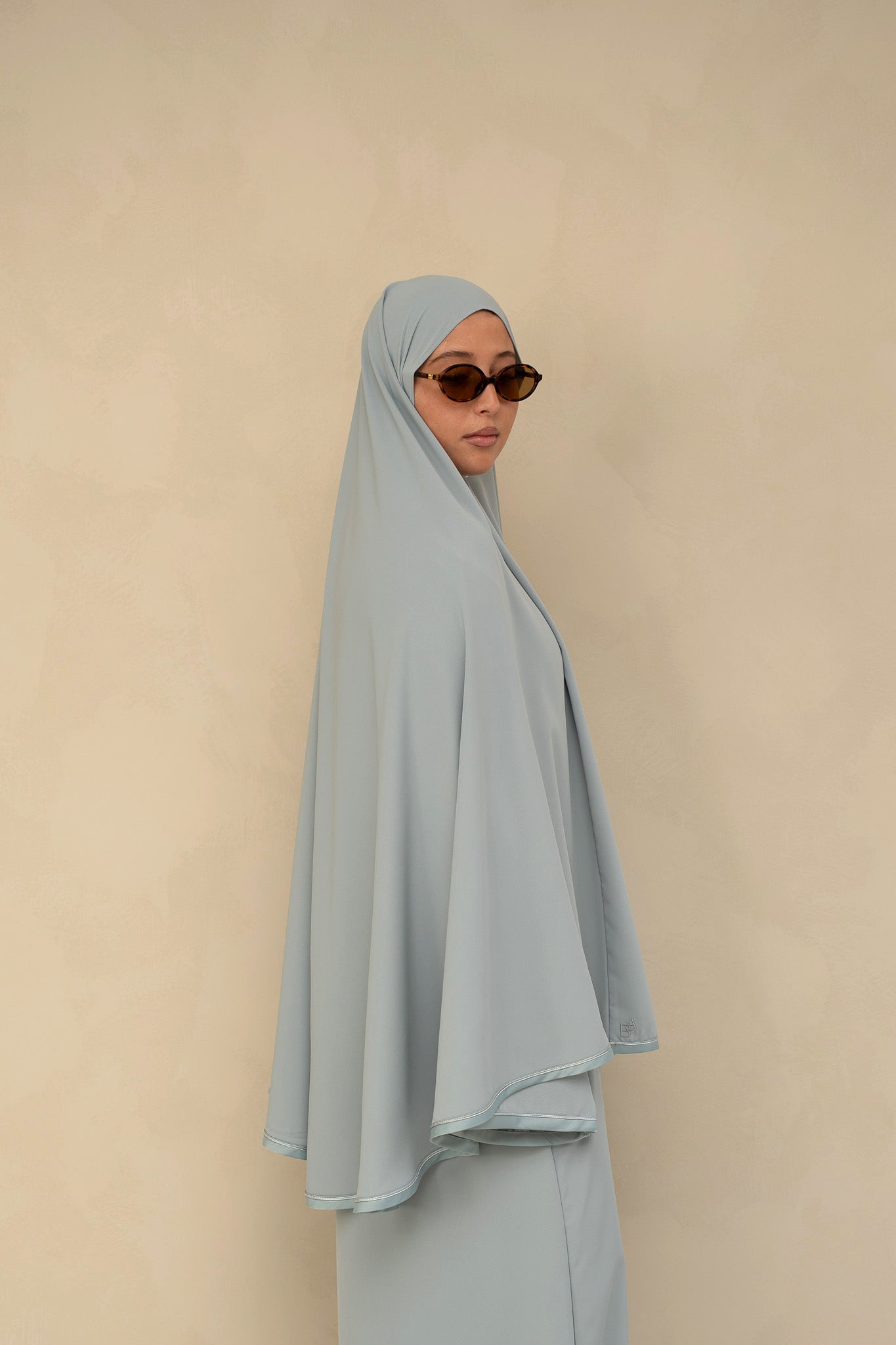 Silk Edge Abaya & Khimar Set - Serene Blue