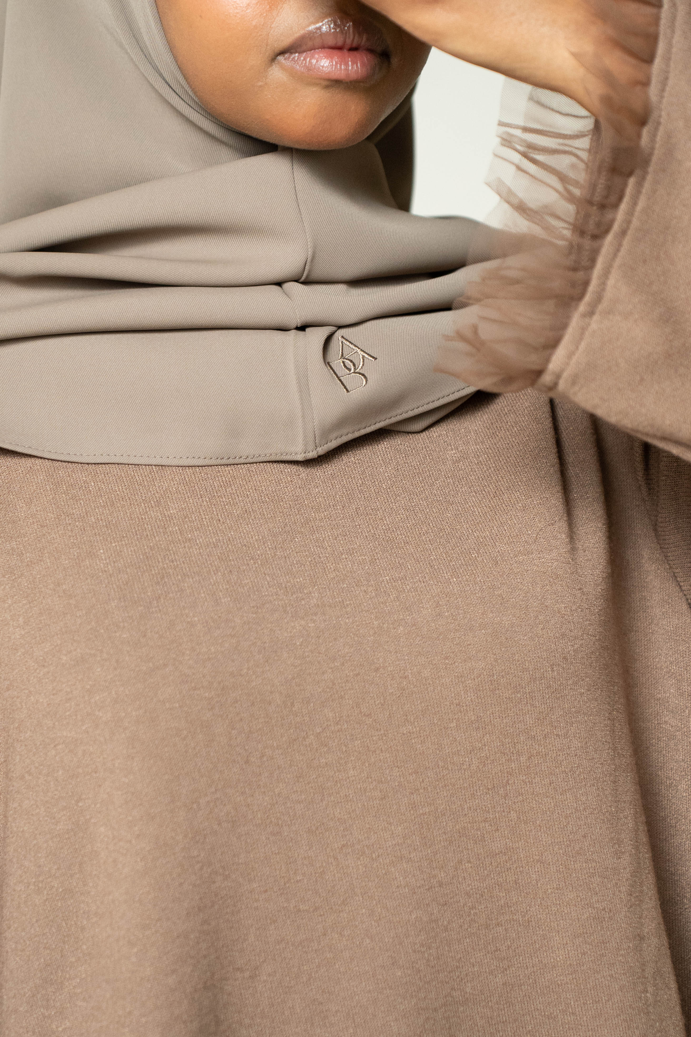 Sweater Mesh Abaya & Khimar Set - Deep Taupe
